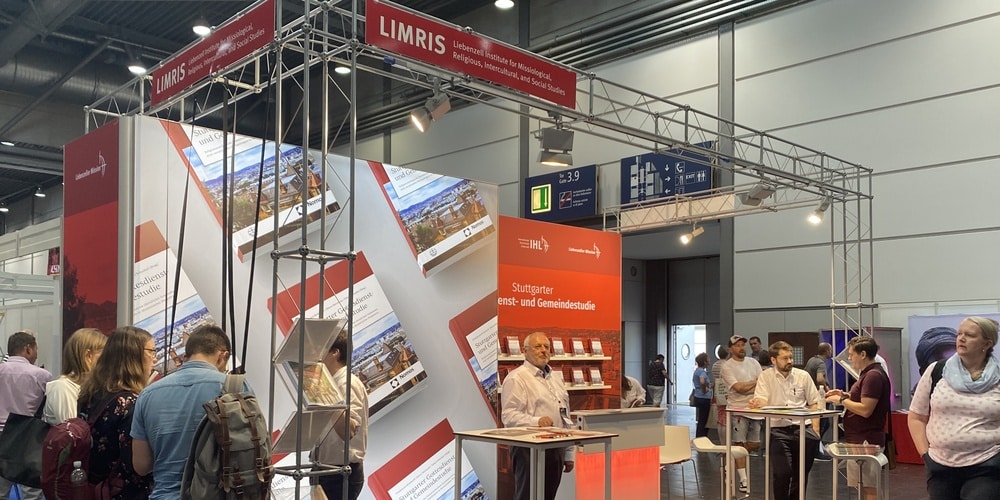 Von 25. bis 27. August präsentierte LIMRIS seine jüngst abgeschlossene Metropolstudie zur Gottesdienst- und Gemeindewirklichkeit im Raum Stuttgart (2,7 Mio.) und erntete ein unerwartet großes Interesse auf der Fachausstellung. Kongressteilnehmer aller Generationen und gemeindlicher Funktionen sowie Mitarbeiter der etwa 80 Mitaussteller auf der Fachmesse ließen sich die Studie erklären oder beschäftigten sich selbst mit dem Thema. Ermöglicht wurde die hohe Aufmerksamkeit durch den von der Firma Kühnle-Messebau interaktiv konzipierten Stand. So konnten Leute stehen bleiben im Buch lesen, sich gemütlich dazu in einen Sessel setzen oder mit den Standmitarbeitenden sprechen. Der Stand war Anlaufstelle für ein sehr unterschiedliches Publikum: Alte Bekannte aus „Berg“-Zeiten, Missionsfreunde, engagierte Interessierte und zukünftige Kooperationspartner, viele Studierende, Vikare und Pastoren, Theologen und Gemeindemitarbeitende. Es wurden Beziehungen vertieft und neue aufgebaut. Es gab zahlreiche Gespräche über die Ausbildungsmöglichkeiten in Liebenzell. In der Regel waren in den Plenumspausen alle Standmitarbeiter im Dialog. Während der Plenumsvorträge gab es mehr als nur Besprechungen zu möglichen Auftragsforschungen oder Berichten in Magazinen, sondern das Team konnte mit konkreten Anfragen nach Hause fahren.